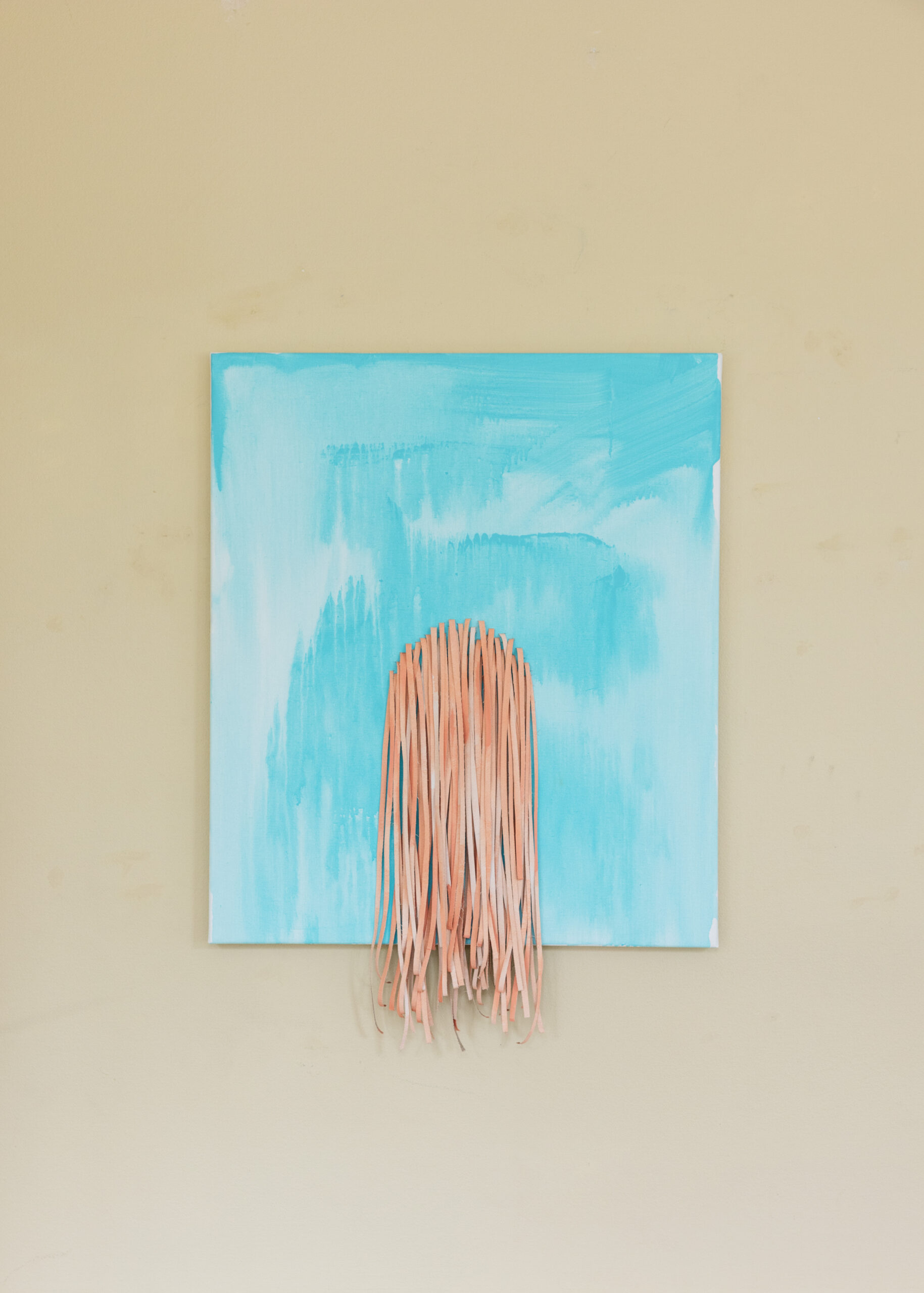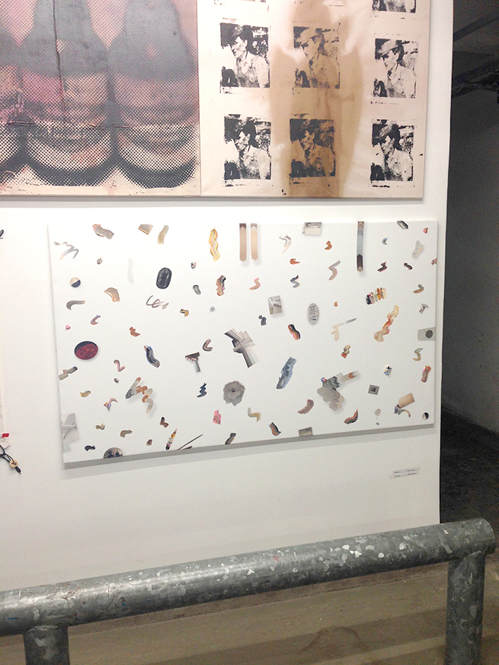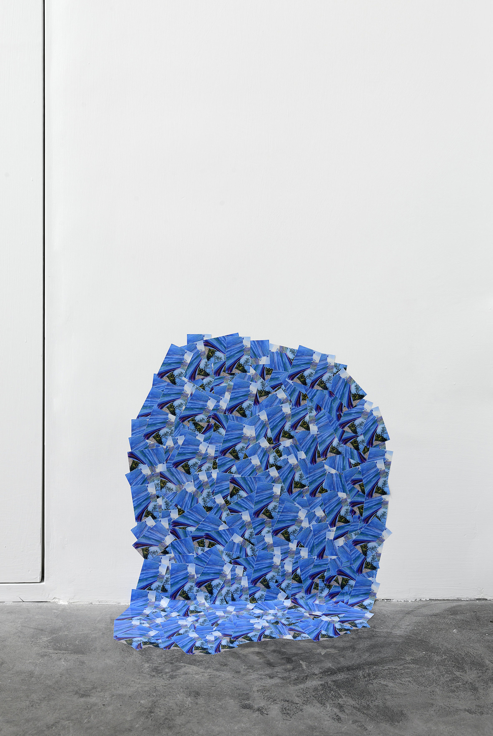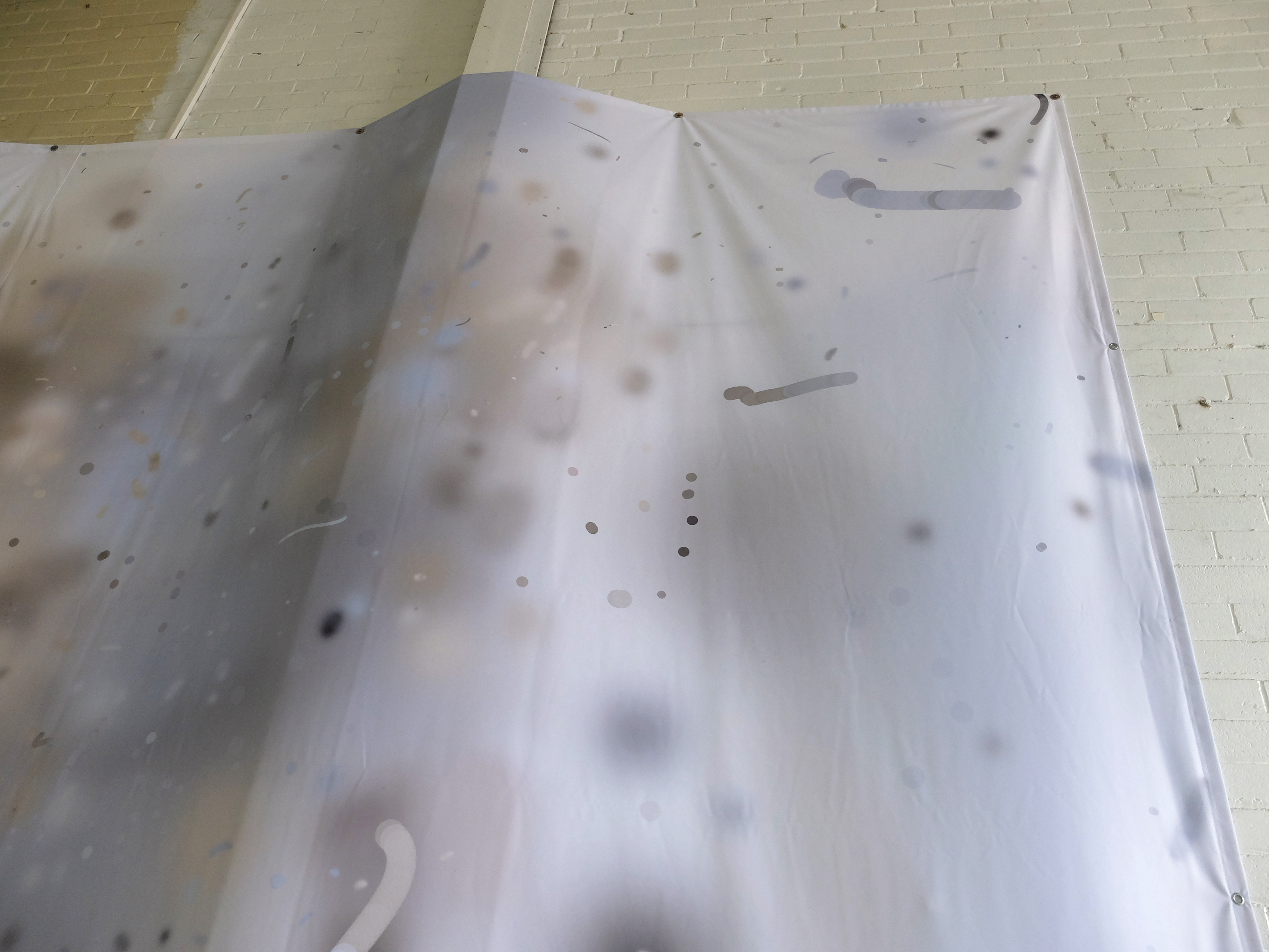 Untitled Rug #8, digitally printed rug, and Terry, Wet Paint performance piece, digital print on canvas, 2016