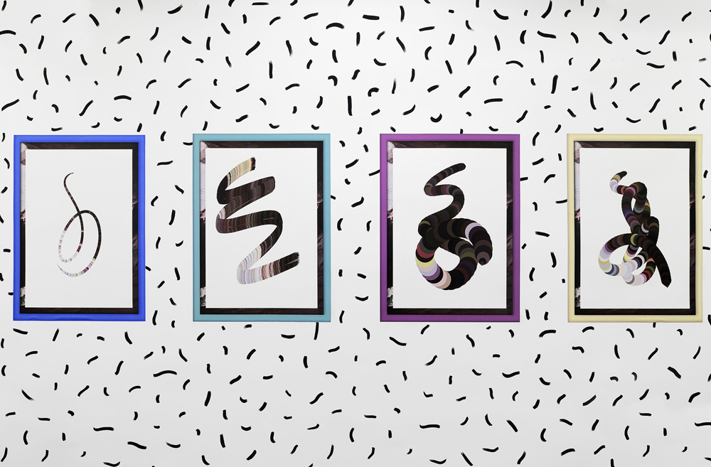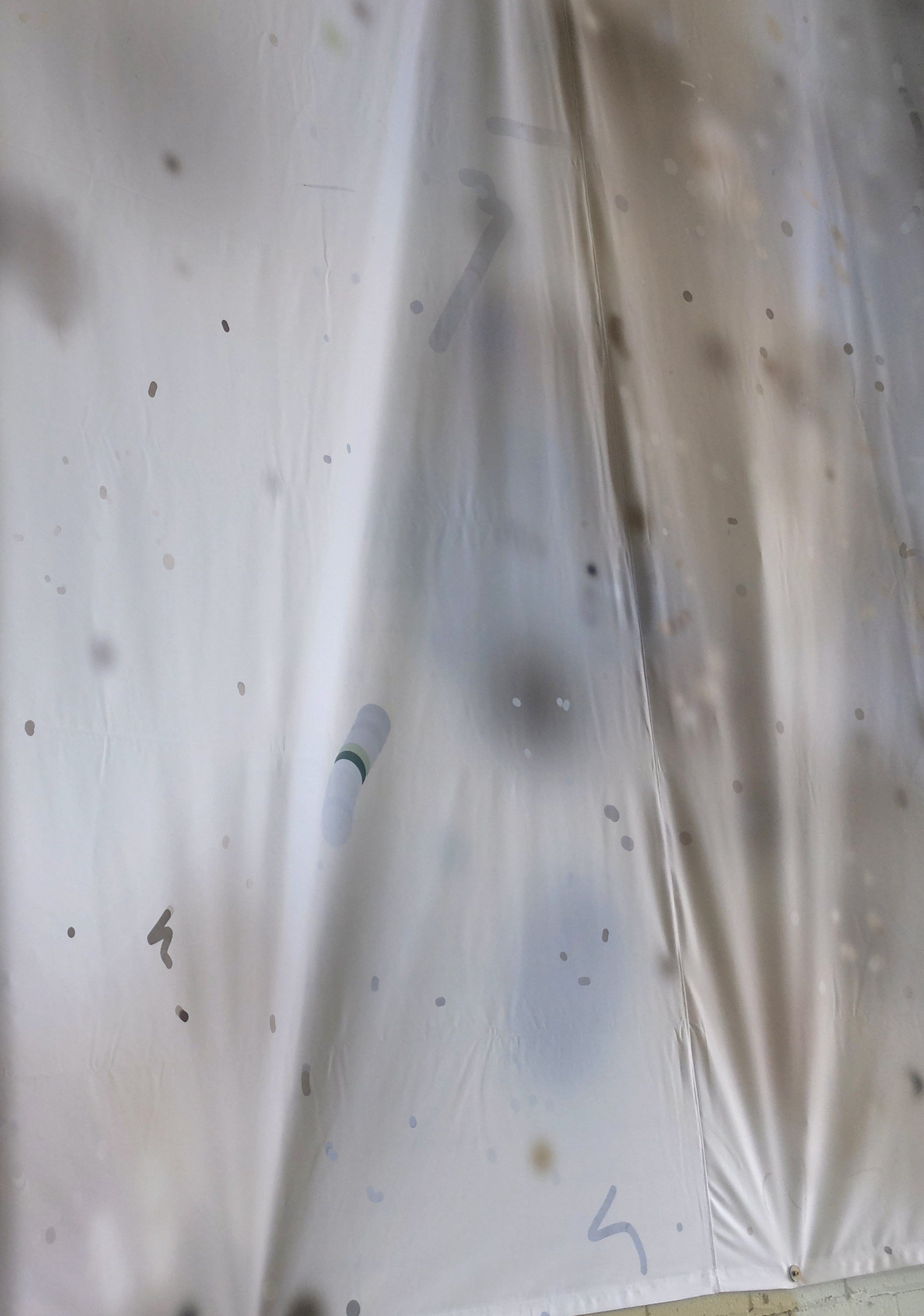 Puzzled games, acryliv on linen mounted on wall, sitespecific, various dimensions.