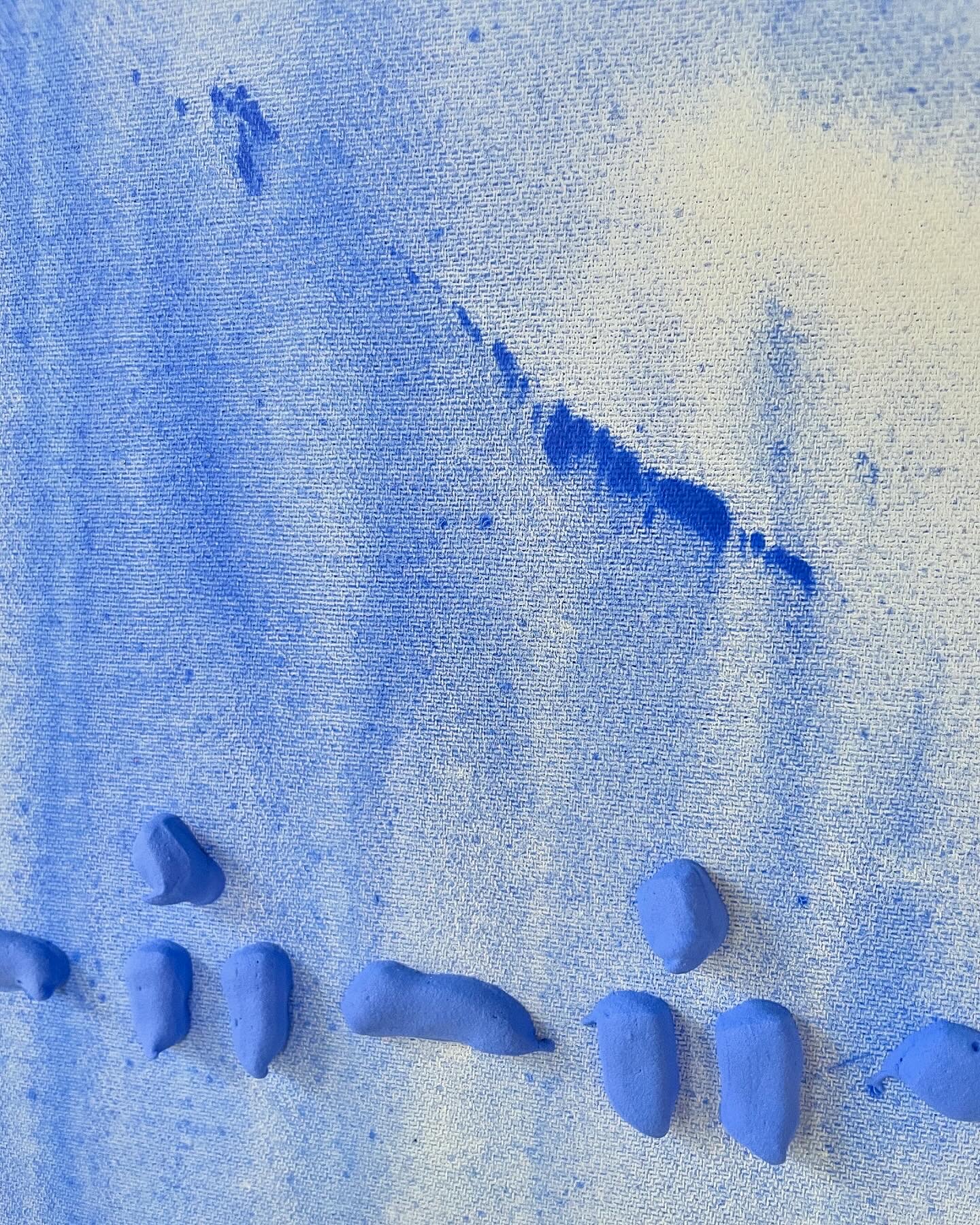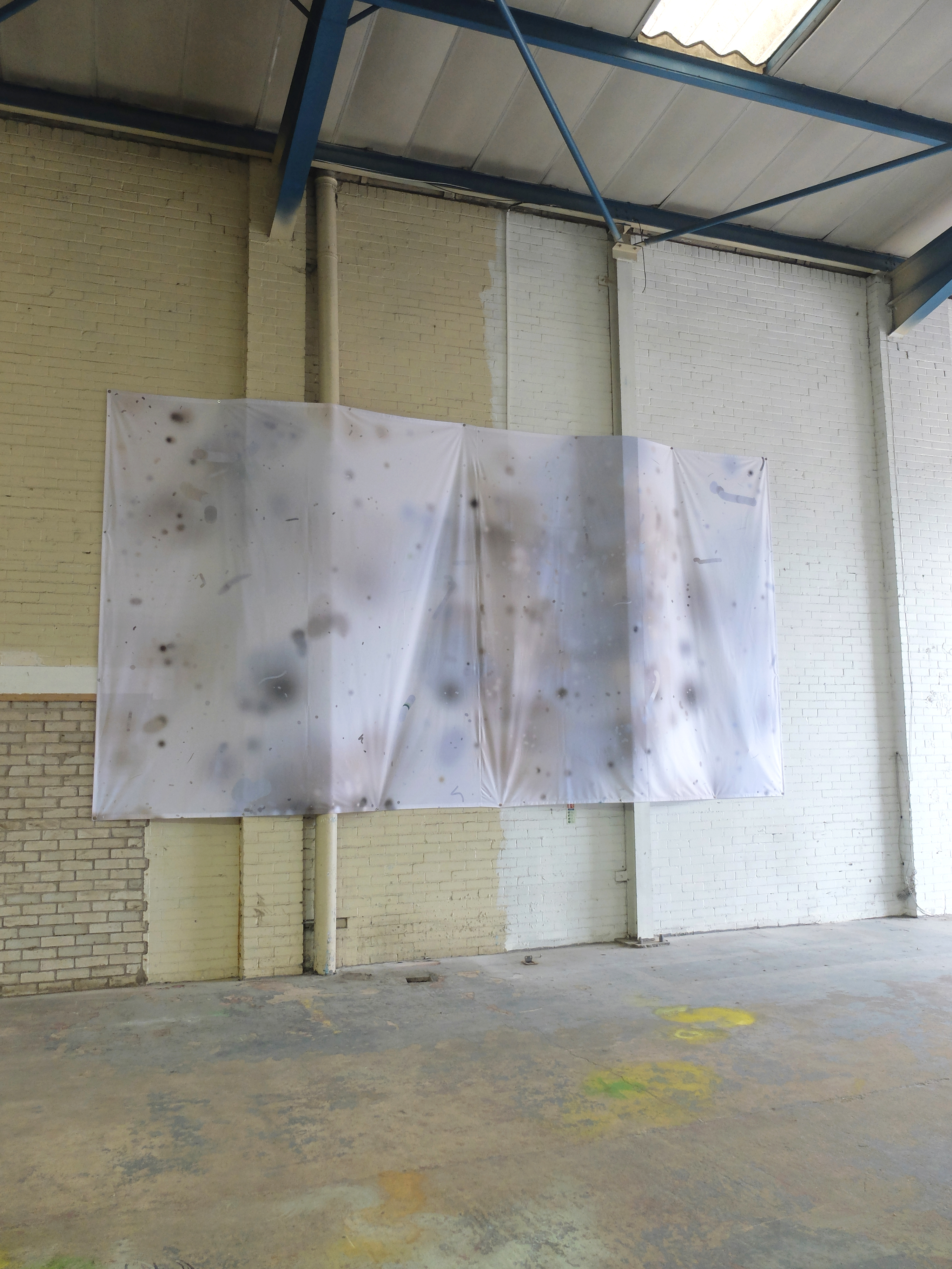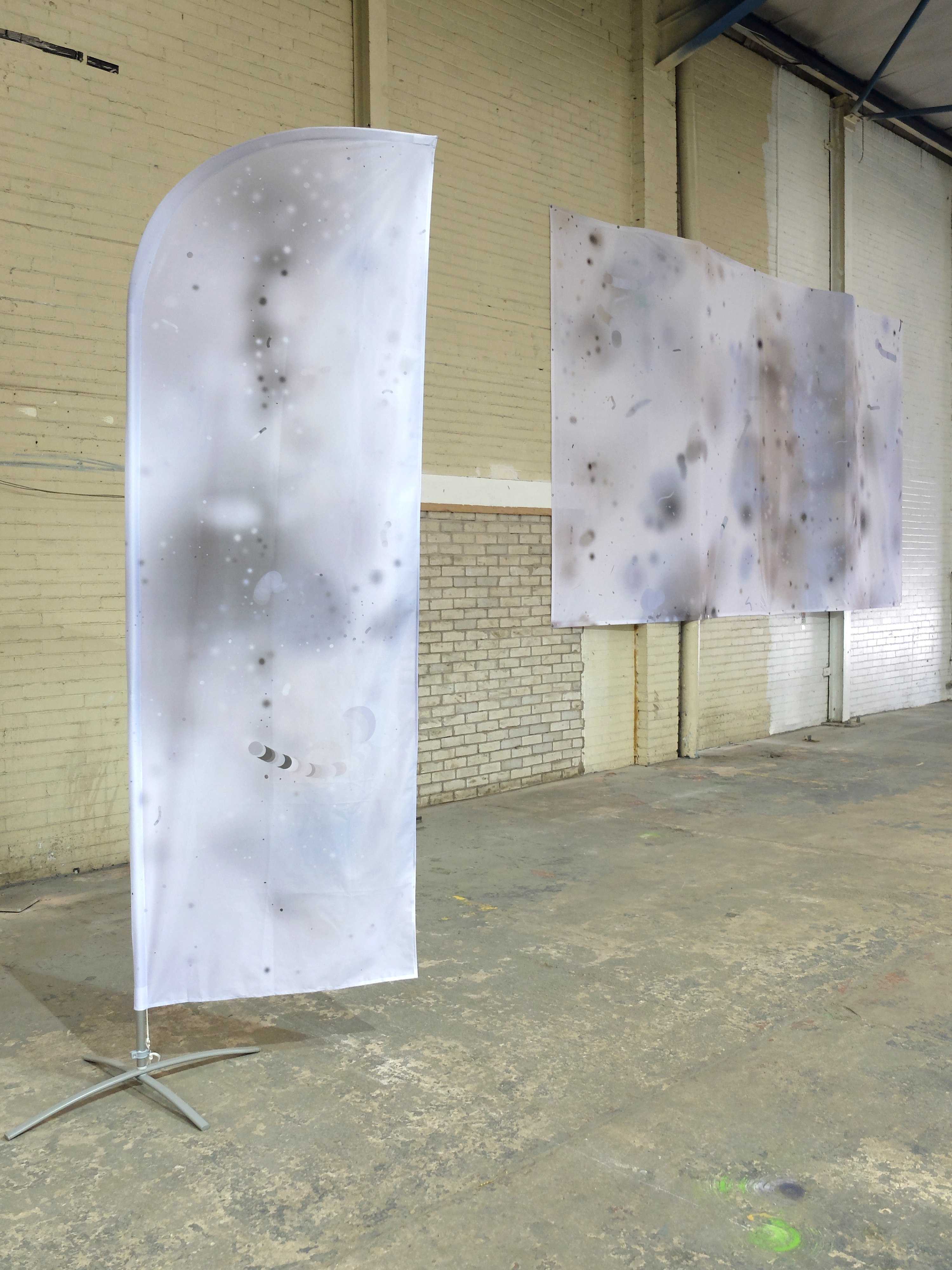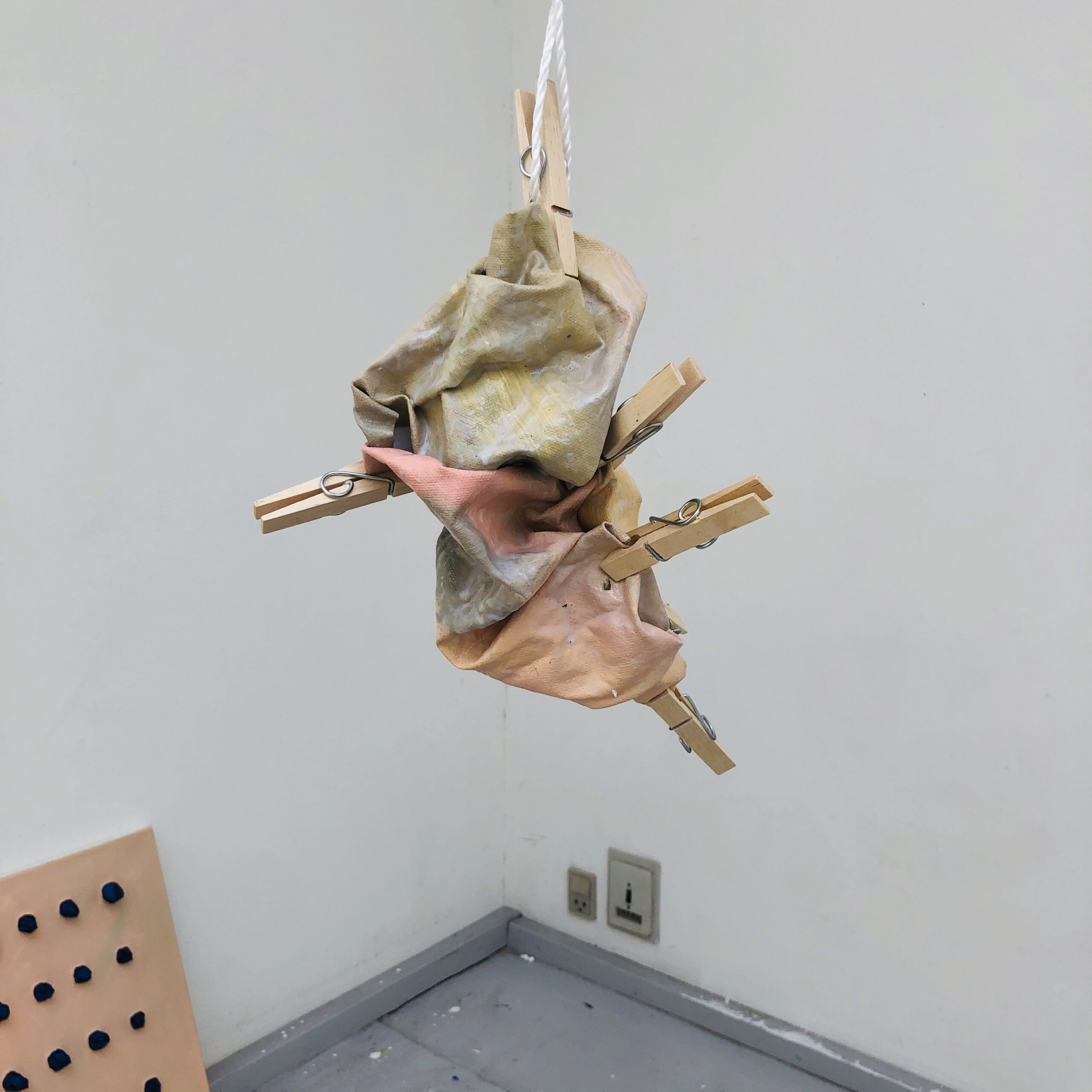 Experimenting hanging mobile painting sculptures, sculptured linen, acrylic, GAC-400