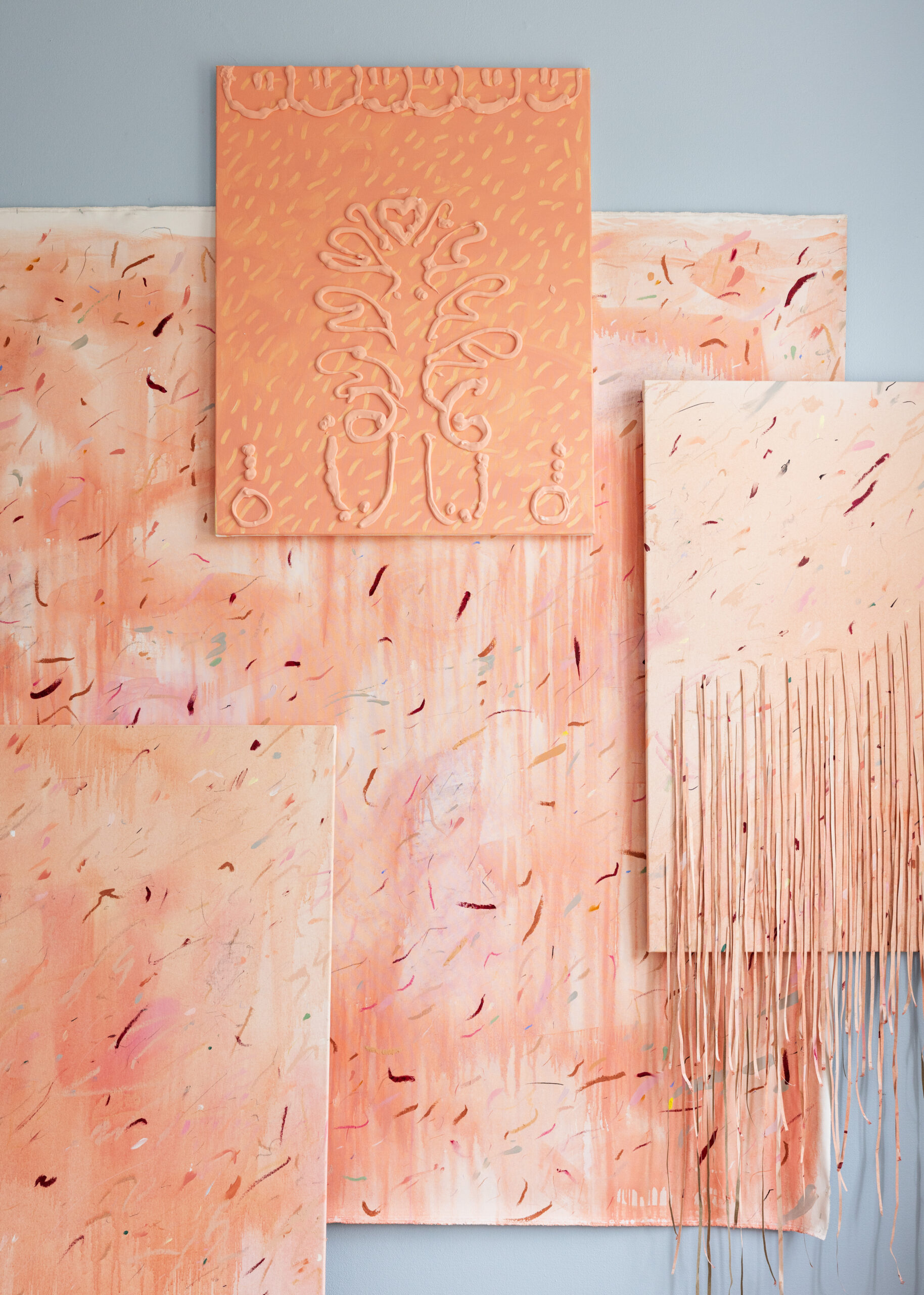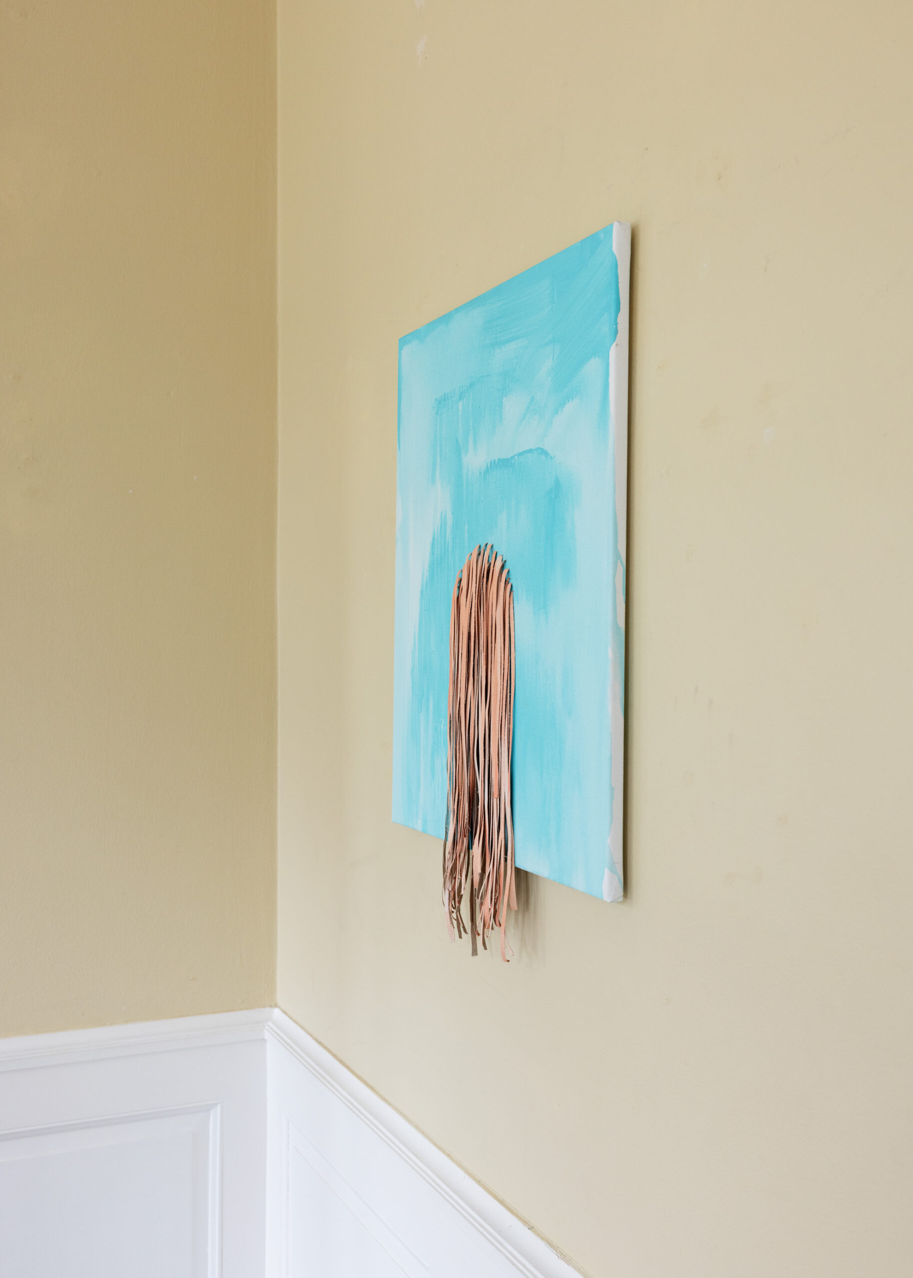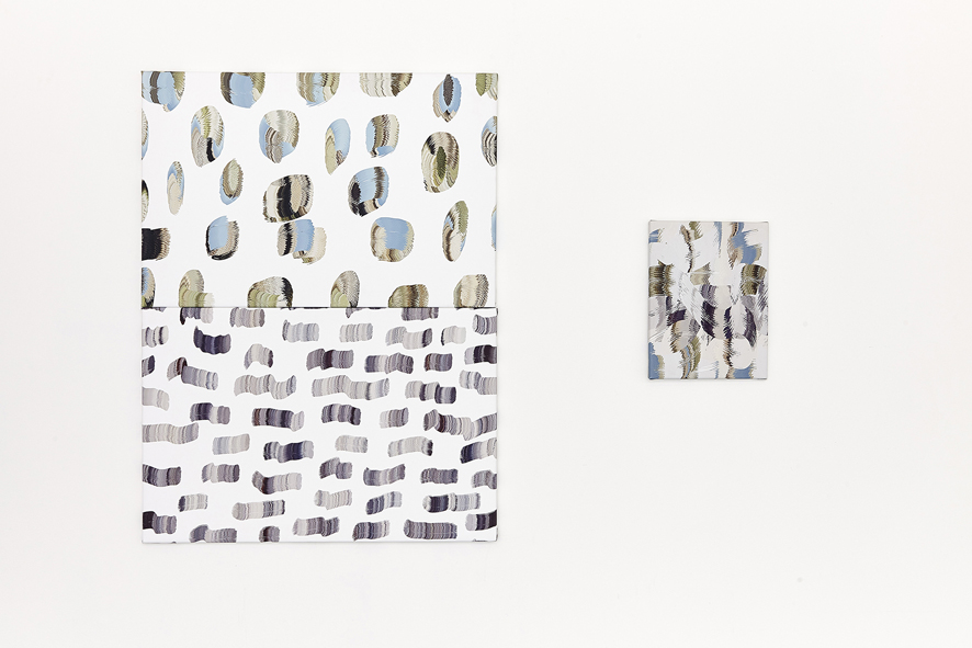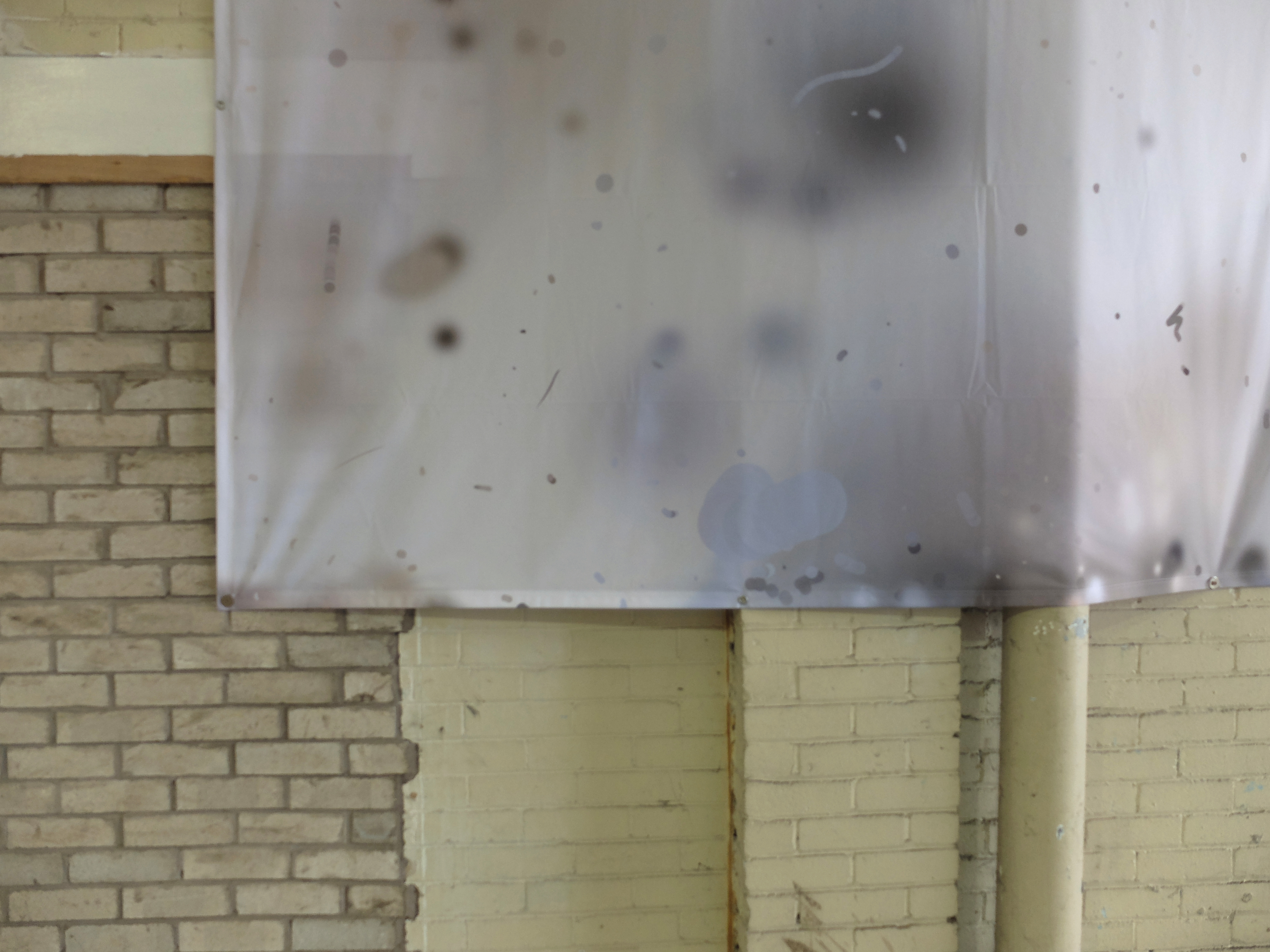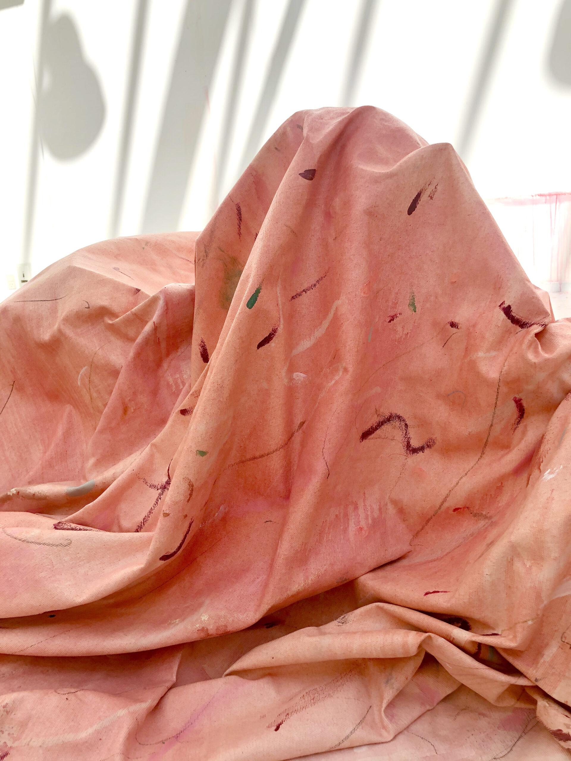 Finger painted wall, detail, and Untitled, Folded Rug, 2016