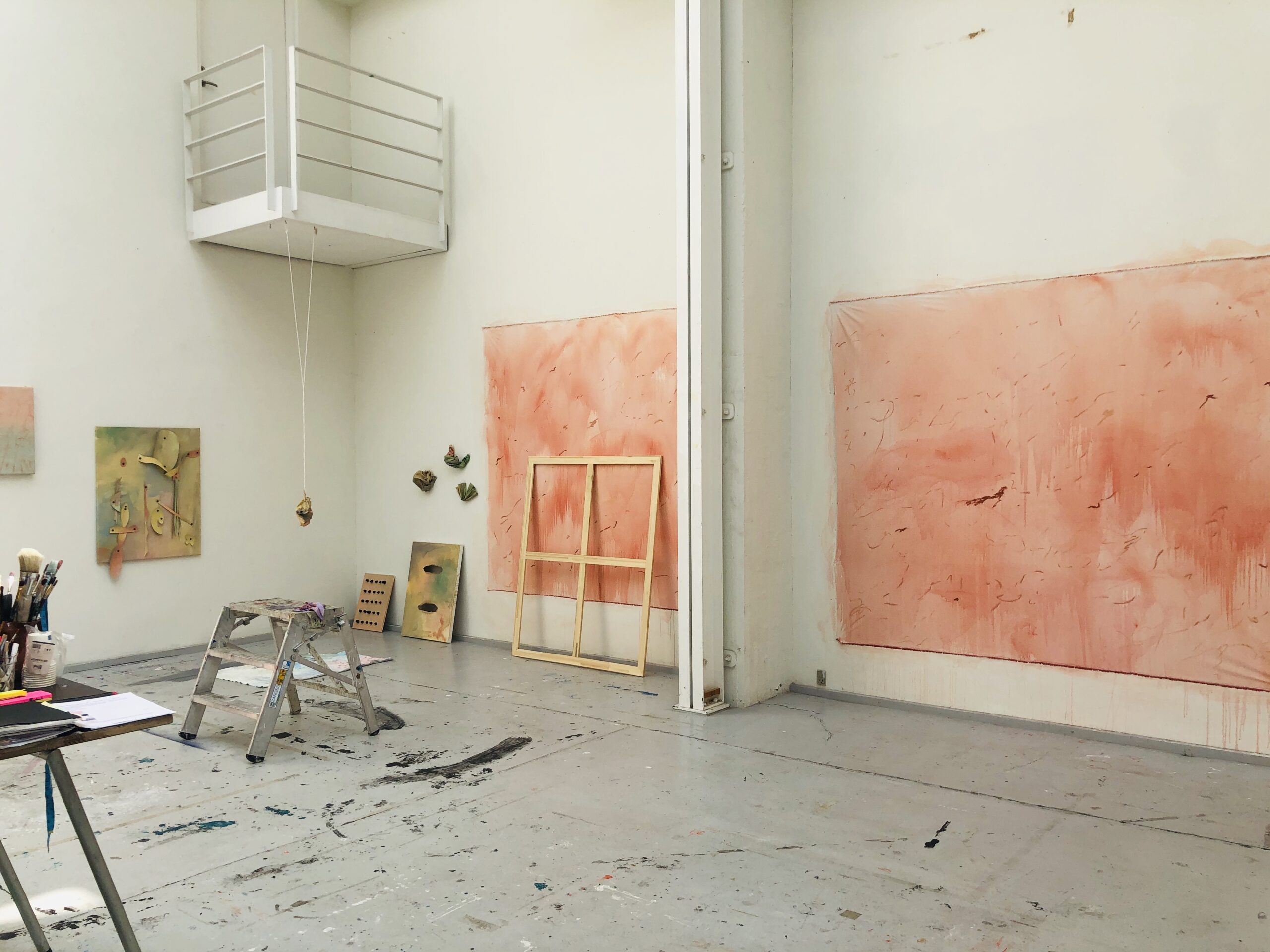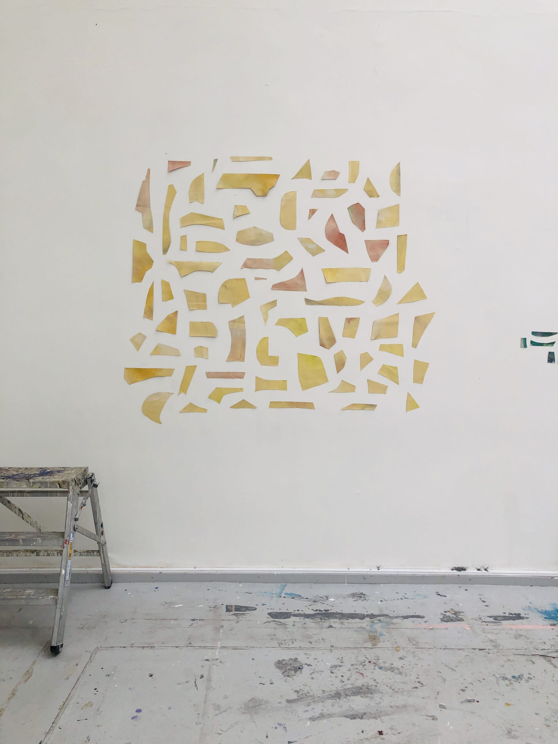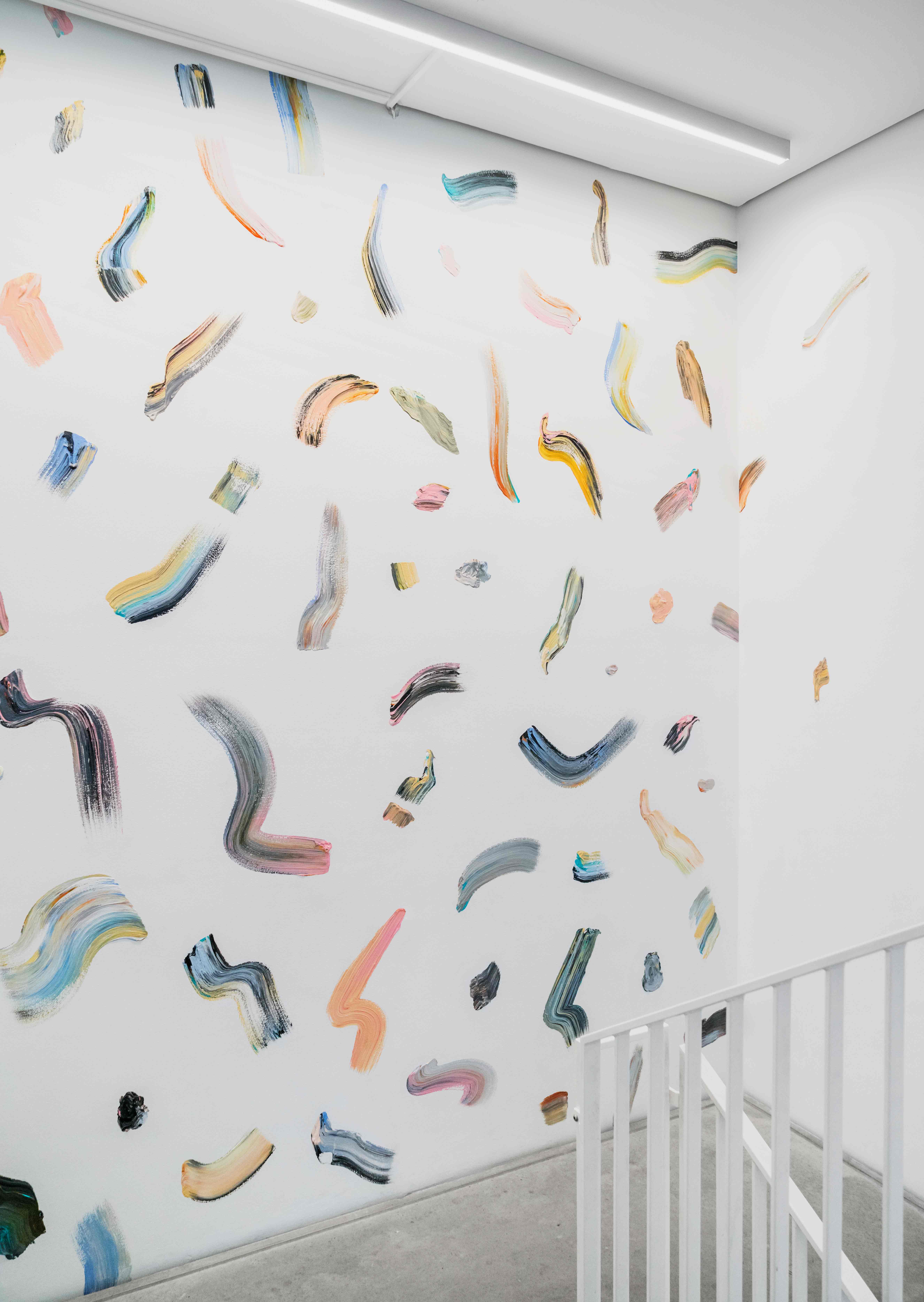 Untitled (Installation), finger painted wall, found paint within the premises of New Studio, dimensions variable. The Lamella Space