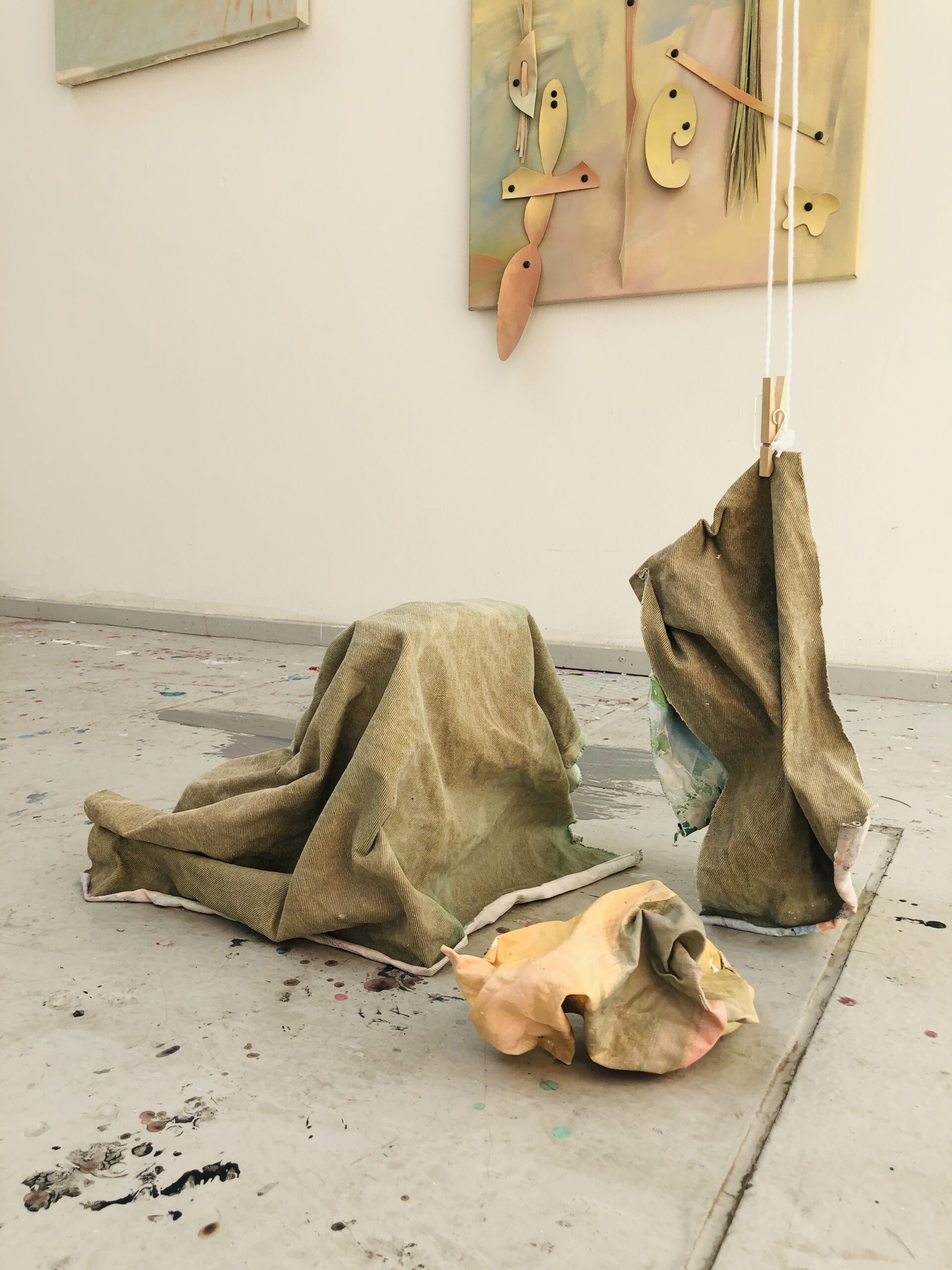 Experimenting painting sculptures, sculptured linen, acrylic, GAC-400